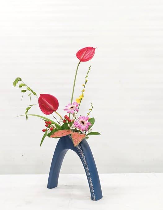 | 自由花型之講解與實作 | 各種不同花材如何搭配變形花器營造出空間的美感。 |